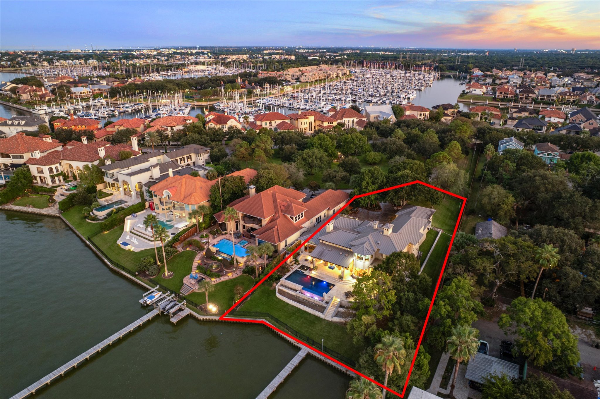 Stunning property, inside and out! 0.65-acre lot on the center of Clear Lake is the largest within Waterford Oaks, the exclusive enclave with a second gated entry within Waterford Harbor.